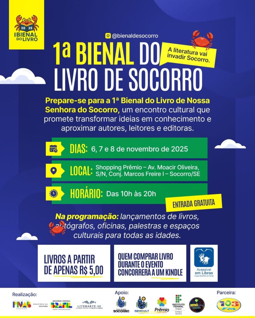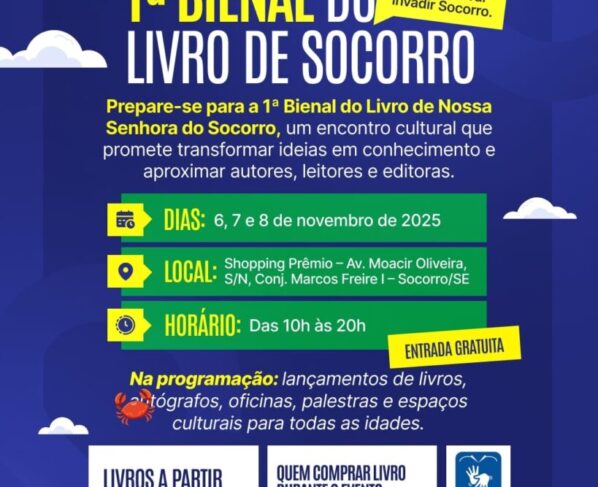 Mais do que um evento literário, a 1ª Bienal do Livro de Socorro chega para fortalecer o cenário cultural do município e inspirar novas gerações de leitores e escritores sergipanos.