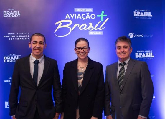 Divulgação Danilo Gomes, coordenador de OTP da Latam Brasil, Tatiane Viana, gerente de Assuntos Regulatórios da Latam Brasil, e Samuel…