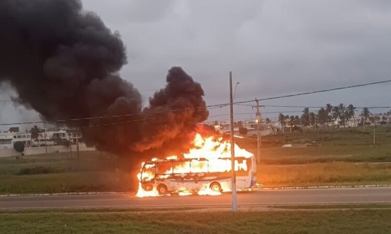 Ônibus escolar pega fogo na Barra dos Coqueiros; ninguém ficou ferido