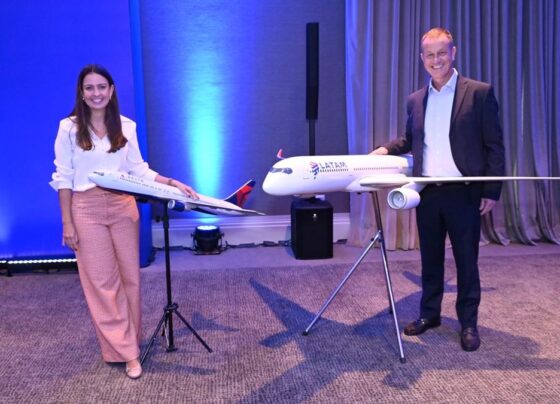 PANROTAS / Emerson Souza Aline Mafra, diretora de Vendas e Marketing da Latam Brasil, e Ricardo de Oliveira, gerente regional…