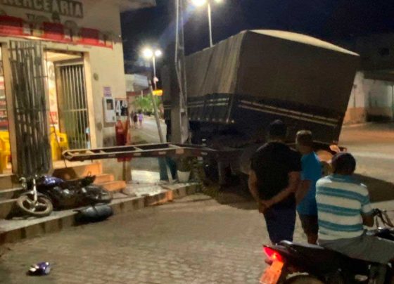 Carroceria de carreta se desprende, atinge poste e comércio em Pinhão
