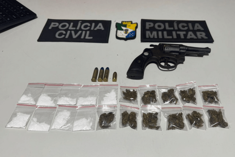 Após o confronto, os policiais apreenderam a arma utilizada pelo foragido, munições de diferentes calibres, além de porções de substâncias análogas à maconha e cocaína. Também foi encontrado um aparelho celular.