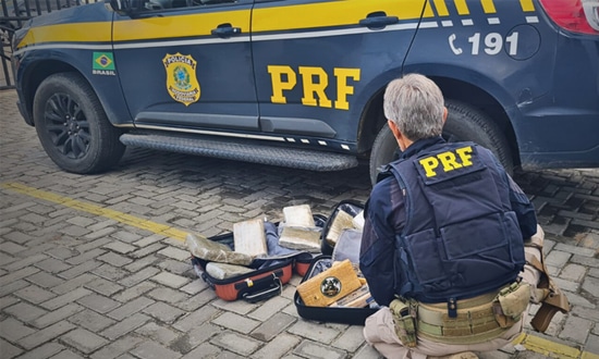 No interior das malas que ela utilizava, os policiais rodoviários federais localizaram 15 tabletes de susbtância análoga a maconha, que totalizaram 14,7kg, além de dois tabletes de substância análoga a crack, num total de 2kg.