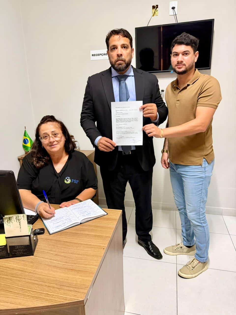 A “Chapa 01 – DEMOCRACIA E TRANSPARÊNCIA” foi protocolada de forma presencial na secretaria da FSF, na tarde desta sexta-feira. O documento foi registrado com os seguintes candidatos: ao cargo de presidente, Milton Dantas de Farias Junior, e aos cargos de vice-presidentes, Danilo dos Santos Farias e Luiz Santana de Carvalho.