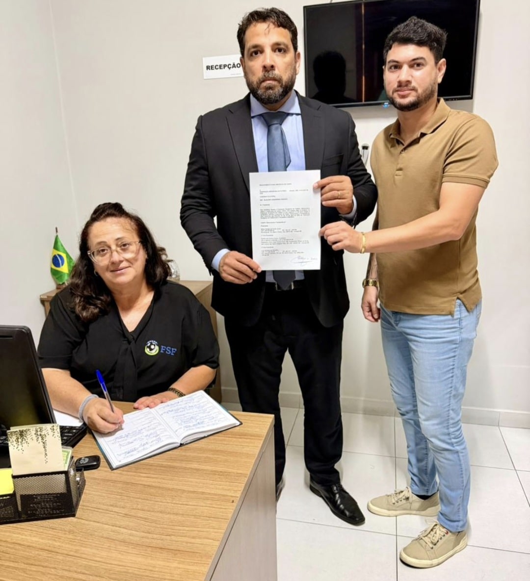 A “Chapa 01 – DEMOCRACIA E TRANSPARÊNCIA” foi protocolada de forma presencial na secretaria da FSF, na tarde desta sexta-feira. O documento foi registrado com os seguintes candidatos: ao cargo de presidente, Milton Dantas de Farias Junior, e aos cargos de vice-presidentes, Danilo dos Santos Farias e Luiz Santana de Carvalho.