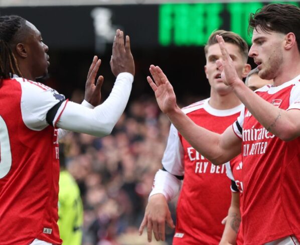 Os gols do time de Mikel Arteta foram marcados por Declan Rice, fazendo valer a “lei do ex”, e Bukayo Saka (cobrando pênalti).