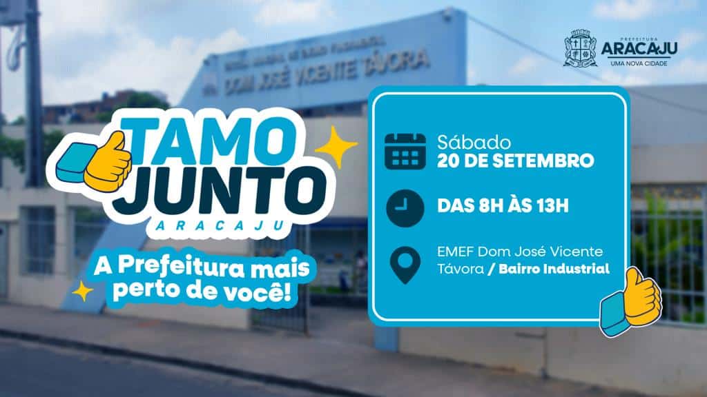 A Prefeitura de Aracaju, por meio da Secretaria Municipal de Governo (Segov), convida os veículos de imprensa para a segunda edição do projeto ‘Tamo Junto Aracaju’, que será realizada na Escola Municipal de Ensino Fundamental (Emef) Dom José Vicente Távora, no bairro Industrial, neste sábado, 20. Com mais de 100 serviços e atividades disponíveis para a comunidade, o evento contará com a participação de 19 órgãos da administração municipal. As ações acontecem das 8h às 13h.