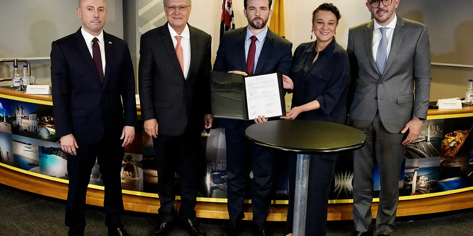 Participaram do evento de assinatura o vice-presidente da República, Geraldo Alckmin, do ministro da Fazenda, Dario Durigan, da presidenta do Banco do Brasil, Tarciana Medeiros, e do secretário de Fazenda e Planejamento do Estado de São Paulo, Samuel Kinoshita.