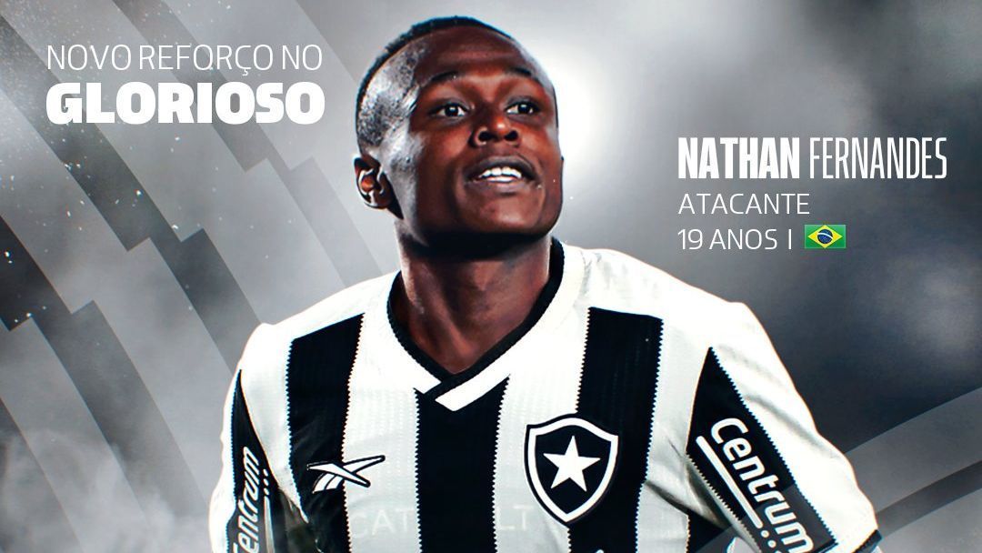 O Botafogo anunciou, nesta sexta-feira (14), a contratação do atacante Nathan Fernandes, ex-Grêmio. O atleta de 19 anos assinou um contrato válido até o final de 2029.