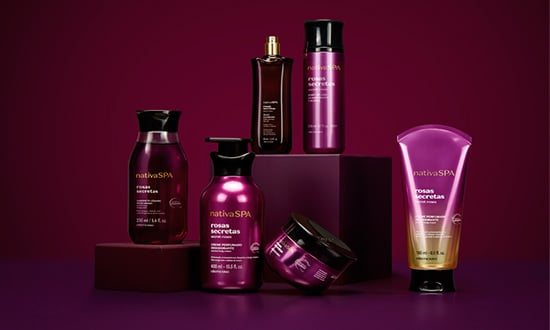 Inspirada na fragrância floral, ícone clássico da perfumaria, e na sensorialidade desenvolvida por meio da neurociência, o Boticário amplia o portfólio da sua maior marca de cuidados com o lançamento de Nativa SPA Rosas Secretas. Primeiro lançamento da marca com fragrância inspirada no olfativo da alta perfumaria árabe, traz a rosa turca como símbolo de intensidade, magnetismo e poder feminino decodificado numa linha completa de cuidados corporais que projeta alta perfumação.