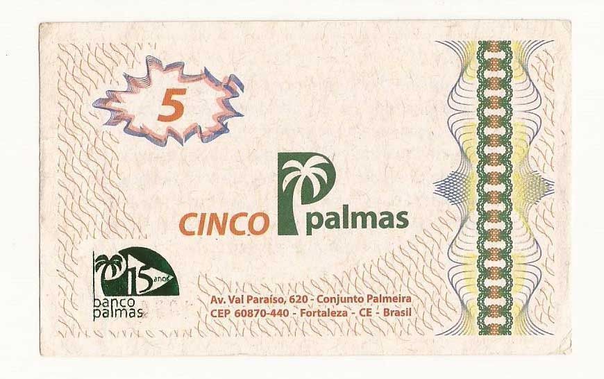 A primeira moeda social foi a Palma, que surgiu em 1998 na cidade de Fortaleza (CE), com a criação do Banco Palmas, no bairro Conjunto Palmeiras.