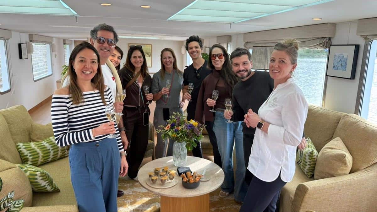 Brasileiros navegam pela Borgonha a bordo da embarcação Lilas, da Belmond