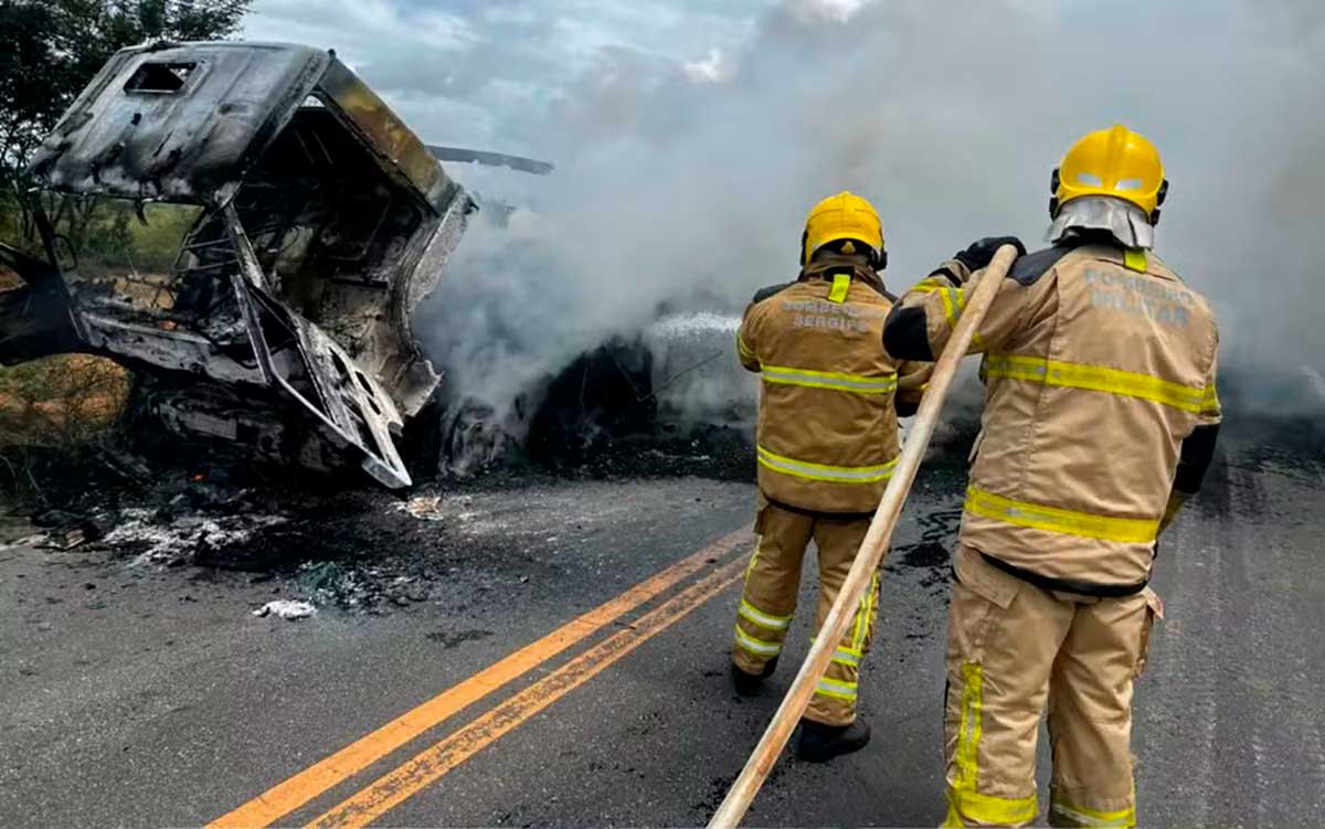 Um caminhão carregado com pneus pegou fogo nesta quarta-feira (29), na Rodovia SE-170, entre os municípios de Riachão do Dantas e Tobias Barreto.