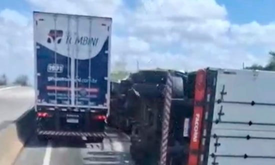 Caminhão tomba e interdita parcialmente trecho da BR-101 em Propriá