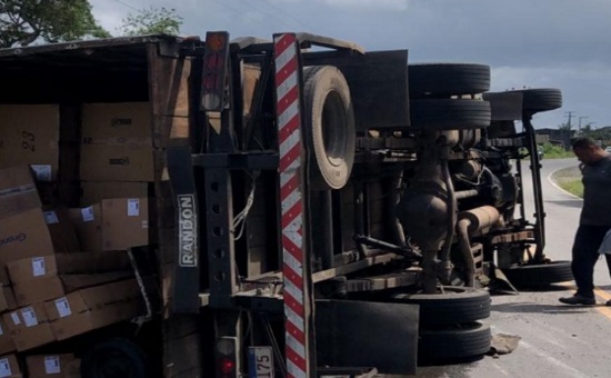 Caminhão tomba na SE-282 e deixa homem ferido em Boquim