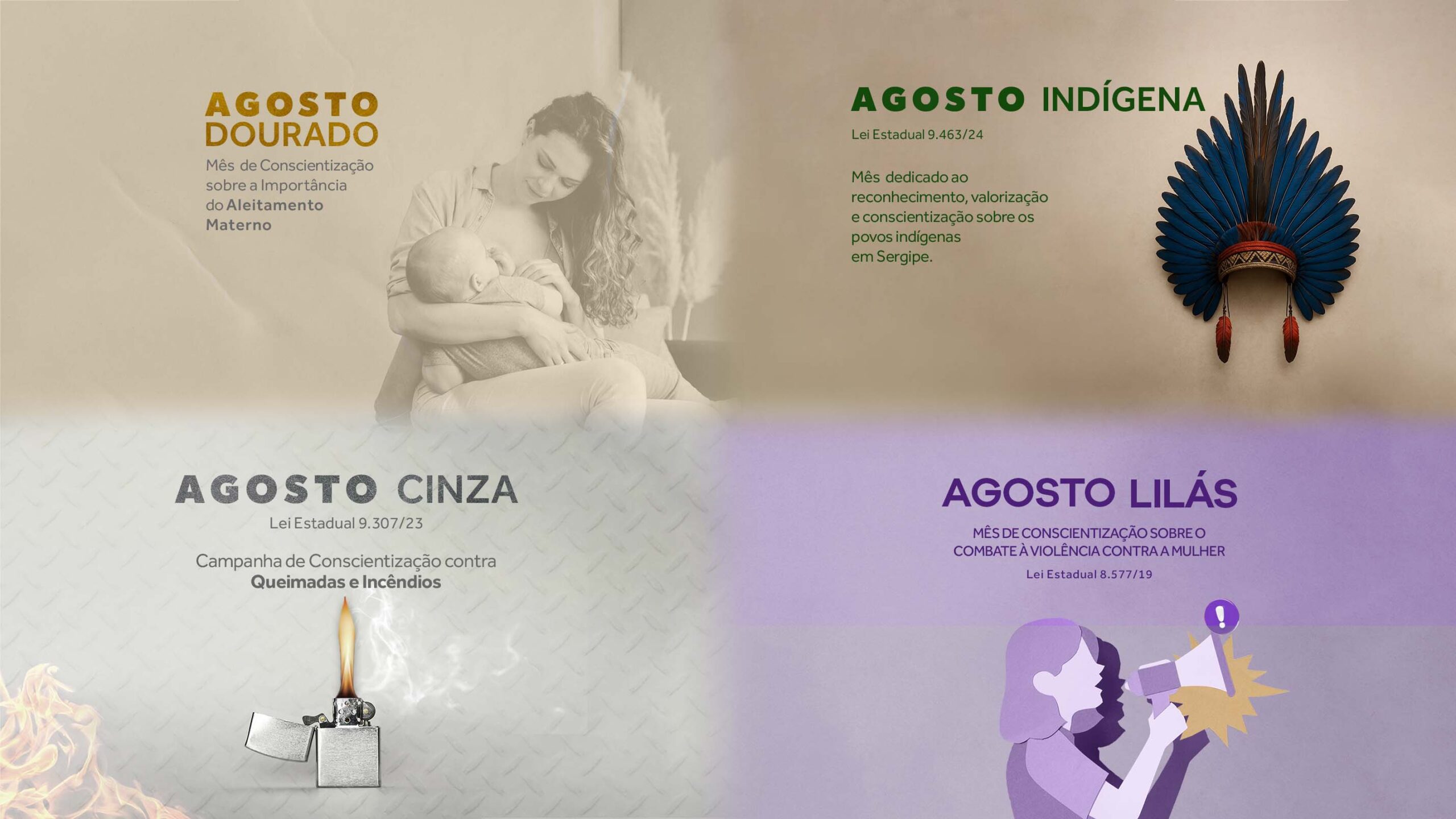 Ao longo dos anos, os deputados da Assembleia Legislativa do Estado de Sergipe (Alese) aprovaram diversas legislações voltadas à promoção de campanhas de conscientização. No mês de agosto, quatro importantes iniciativas são celebradas: os Agostos Dourado, Cinza, Lilás e Indígena.
