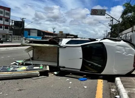 Um carro capotou na manhã desta segunda-feira (17) e em seguida atingiu a lateral de outro veiculo, no cruzamento das avenidas Augusto Franco e Gonçalo Prado Rollemberg Leite, em Aracaju.