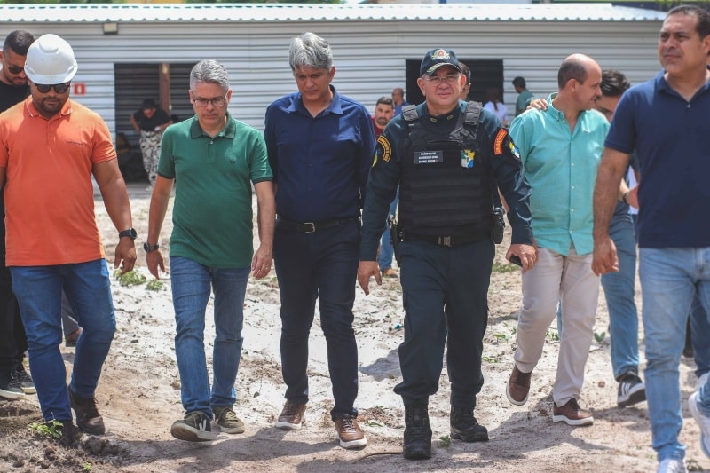 Durante a vistoria, as autoridades acompanharam o andamento dos trabalhos e verificaram de perto a estrutura que está sendo erguida para abrigar a unidade operacional, considerada estratégica para o reforço da segurança pública no município e em toda a região metropolitana.