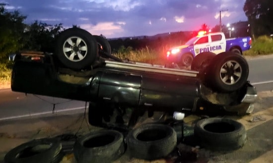 Condutor de caminhonete fica ferido após veículo capotar em São Cristóvão