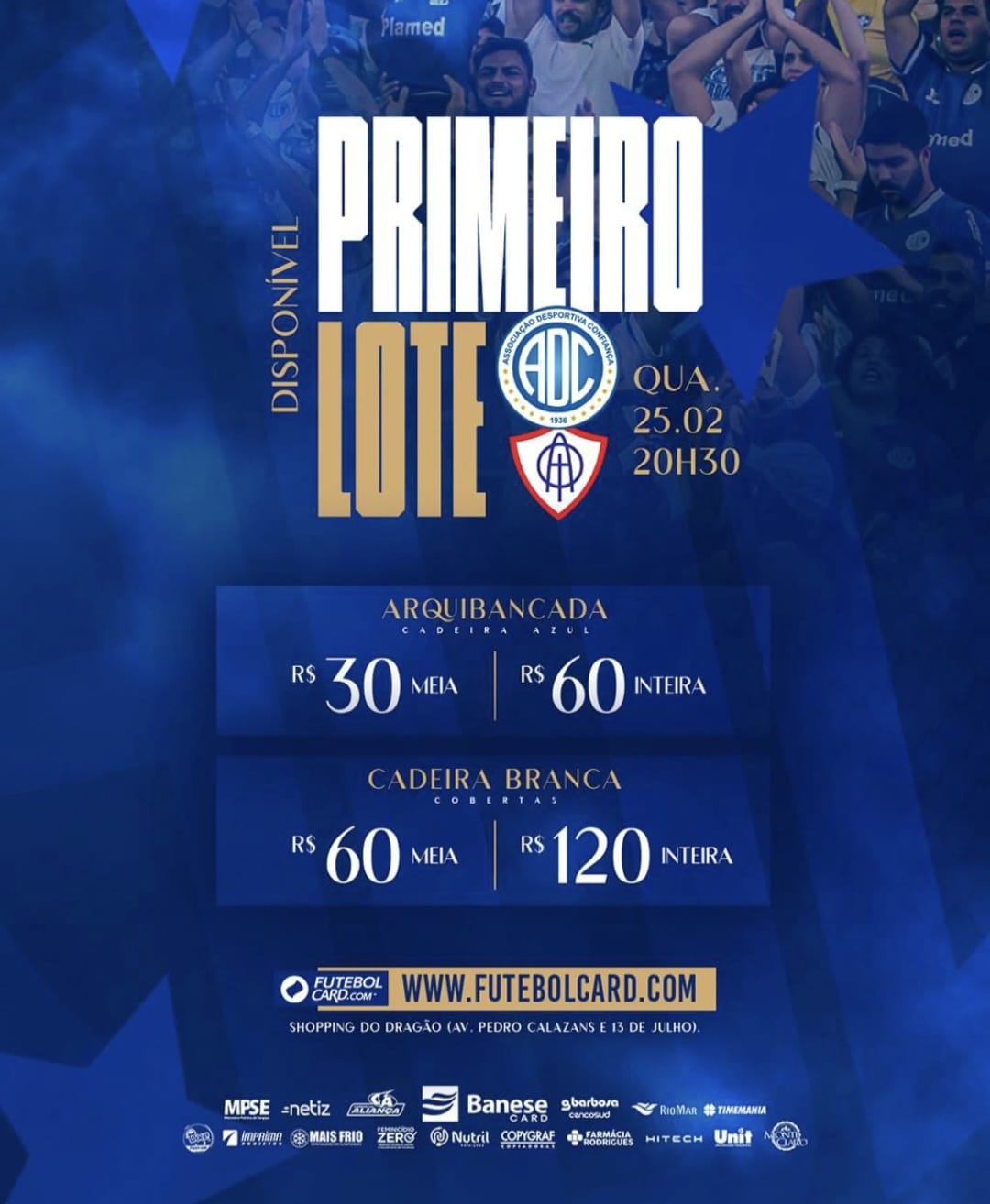 As entradas estão sendo vendidas nas duas unidades do Shopping do Dragão (Avenida Pedro Calazans e bairro 13 de Julho) e no site www.futebolcard.com. Nos pontos de venda físicos, é possível realizar o pagamento por meio de Pix, cartões de débito e crédito, além de dinheiro.