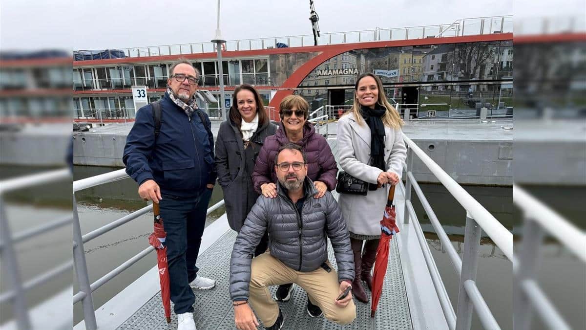 Brasileiros a bordo do AmaMagna durante o Latam Summit: Ricardo Alves, da Velle, Erika Aguilar e Lilian Meireles, da R11 Travel, Custódio Jr., da Kangaroo e ao centro Marcia Galvão, gerente de Vendas Brasil da AmaWaterways