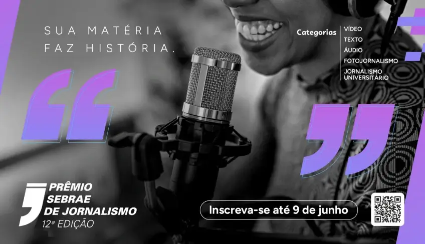 Em 2025, o Prêmio Sebrae de Jornalismo (PSJ) vai reconhecer e prestigiar as melhores reportagens sobre o universo do empreendedorismo. São quatro categorias principais (Texto, Áudio, Vídeo e Fotojornalismo) para profissionais de imprensa, além da categoria especial Jornalismo Universitário, para estudantes de Comunicação de todo o Brasil.