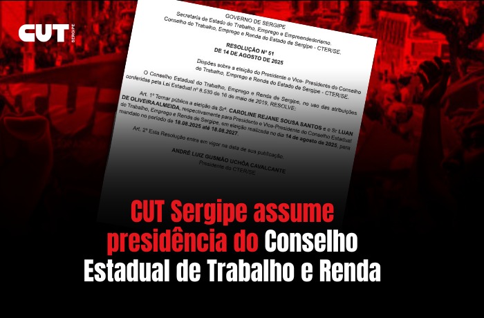 CUT Sergipe assume presidência do Conselho Estadual de Trabalho e Renda – FaxAju