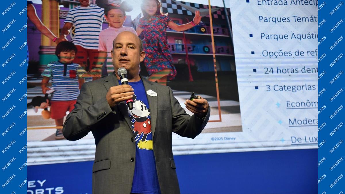 O gerente de Vendas da Disney Destinations no Brasil, Alexander Haim, subiu ao palco para apresentar aos participantes as últimas novidades e investimentos que a Disney vem fazendo nos últimos anos.