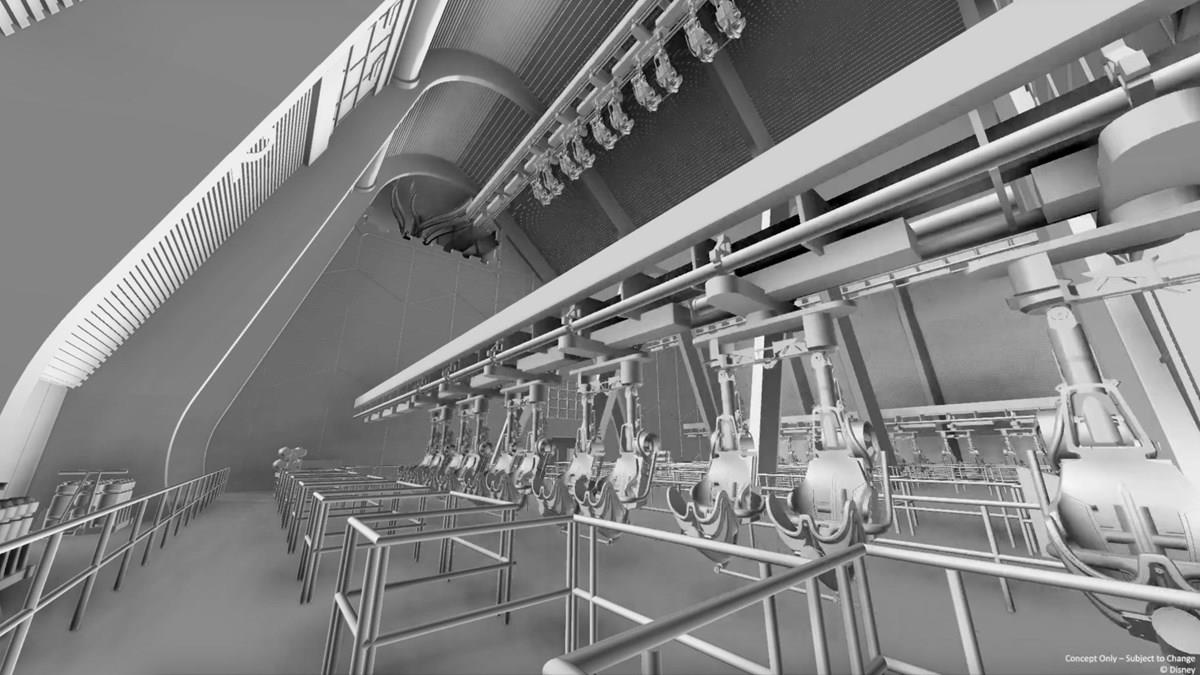 Enquanto muitos detalhes sobre a atração ainda não podem ser divulgadas, a equipe Imagineering revelou uma grande novidade: a montanha-russa suspensa será também palco para o primeiro elevador vertical. Ou seja, os visitantes embarcarão e logo serão içados ao ar para se conectarem com os trilhos das portas.