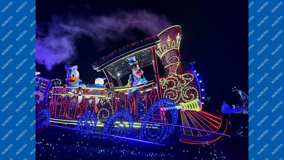 A magia começa com a Fada Azul, de Pinóquio, cuja varinha acende o céu e dá início à jornada. No mesmo carro, aparecem também Gepetto e o próprio Pinóquio. A parada segue com a presença de personagens como Peter Pan e Wendy, Asha (Wish), a Família Madrigal (Mirabel, Isabela e Bruno, do Encanto), Elsa (Frozen), Miguel e Pepita (Viva – A Vida é uma Festa), Moana, entre outros.