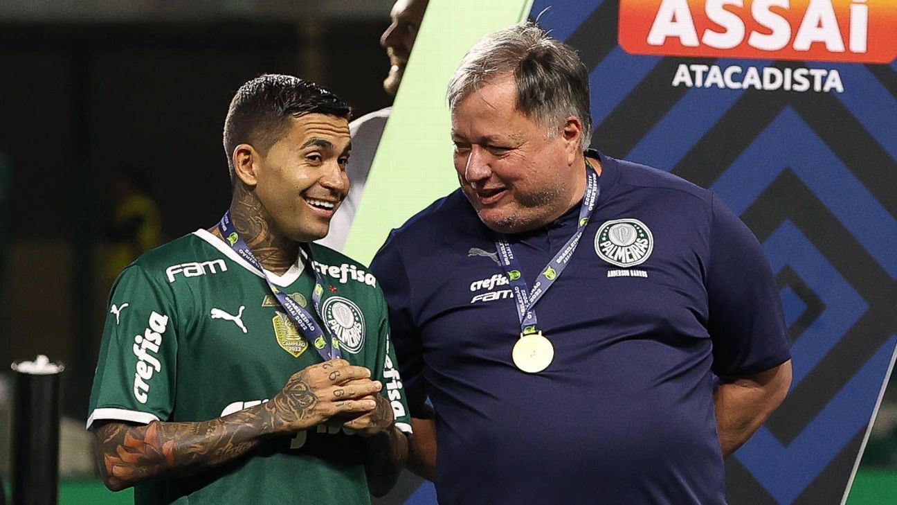 Dudu, mais uma vez. Tenho 24 anos a mais que você, uma vida maior, não tenho a história que você tem no futebol. Não tenho. Não ganhei o que você ganhou, em todos os aspectos. E já tenho meus 56 anos. Vim para cá onde as pessoas sequer acreditaram que conseguiria dar continuidade por eu estar substituindo, na minha modesta opinião, um dos melhores diretores de futebol que existem. O que eu penso, desde que eu sentei aqui, nunca deixei que saísse nada que fosse contra. O que se fala lá fora eu não controlo. Mas daqui, internamente, independente do que tenha acontecido no ano passado. É duro, não é fácil para mim, mas consegui numa linha que eu também entendo que é linha que tem que ser conduzida agora. E eu te citei os exemplos. Te comparei com o que tem de melhor no mundo. Essas decisões sempre foram tomadas, com exceção ao Sergio Ramos, acabou no final saindo arranhada, todas as outras foram tomadas de forma muito bem equilibradas. Eu falei para o André: “Eu não vou competir com quase R$ 120 milhões”. Não vou fazer nada que seja fora do que eu tenho planejado para o clube. É um momento muito duro, muito duro. Mas eu vou acatar e não vou disputar. Vai ter uma hora que você vai pensar: “Porra, o diretor poderia ter endurecido, poderia isso ou aquilo”. Estou sendo honesto com você. Não, nós não fizemos isso. O André pediu para que eu colocasse na sua rescisão… Eu falei: “Vamos fazer”. Se assim é o desejo, e que para muitos vai dar a interpretação: “O Palmeiras facilitou”. Na verdade, o Palmeiras construiu algo para dar a melhor condição de decisão para que ele, que foi o maior de todos aqui. Dudu, a distância da sua planilha para todas as outras planilhas é enorme. O que acontece? Alguns jogadores tiveram aumentos salariais, mas chegaram mais próximos agora. O teu já vem de algum tempo. Quando eu fecho tudo isso…é um respeito e consideração que o clube tem por você. Você é o único jogador que ganha prêmio isolado. Para não dizer que é o único, o Gustavo [Gómez] tem um, acho que pela Libertadores de R$ 400 mil ou R$ 300 mil. Normalmente nunca se paga. Respondendo tudo o que você…tudo o que está dentro do teu coração, o Palmeiras não criou os obstáculos todos para a sua permanência uma vez que o Palmeiras pode, sim, entender que há um respeito muito grande, e foi essa linha que eu achei que era a melhor, para a melhor decisão a ser tomada. Ponto. O resto é hipocrisia. Como você mesmo está dizendo: “Vocês querem que eu fique, mas não fazem nada”. Estou dizendo para você como tudo aconteceu. Que tudo fique muito claro. Fica todo mundo me cobrando. Todos têm um carinho e admiração, você é um ídolo muito grande. Eu também tenho. Isso nem vem ao caso. Mas, no momento de agora, eu e a senhora presidente, entendemos que tínhamos que deixar tudo bem claro. Bem claro. E caso viesse a acontecer qualquer coisa, o Palmeiras iria dizer simplesmente a verdade de tudo. O Palmeiras não vai omitir absolutamente nada e nem vai pedir nada para ninguém. Para mim as verdades das histórias são sempre as melhores para qualquer coisa. É isso.