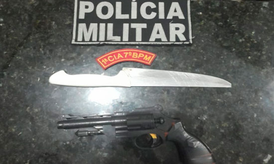 Policiais do 7º Batalhão de Polícia Militar (BPM) prenderam dois homens por uso de simulacro de arma de fogo na noite da última quarta-feira, 30. O fato ocorreu na Praça Sílvio Romero, município de Lagarto.