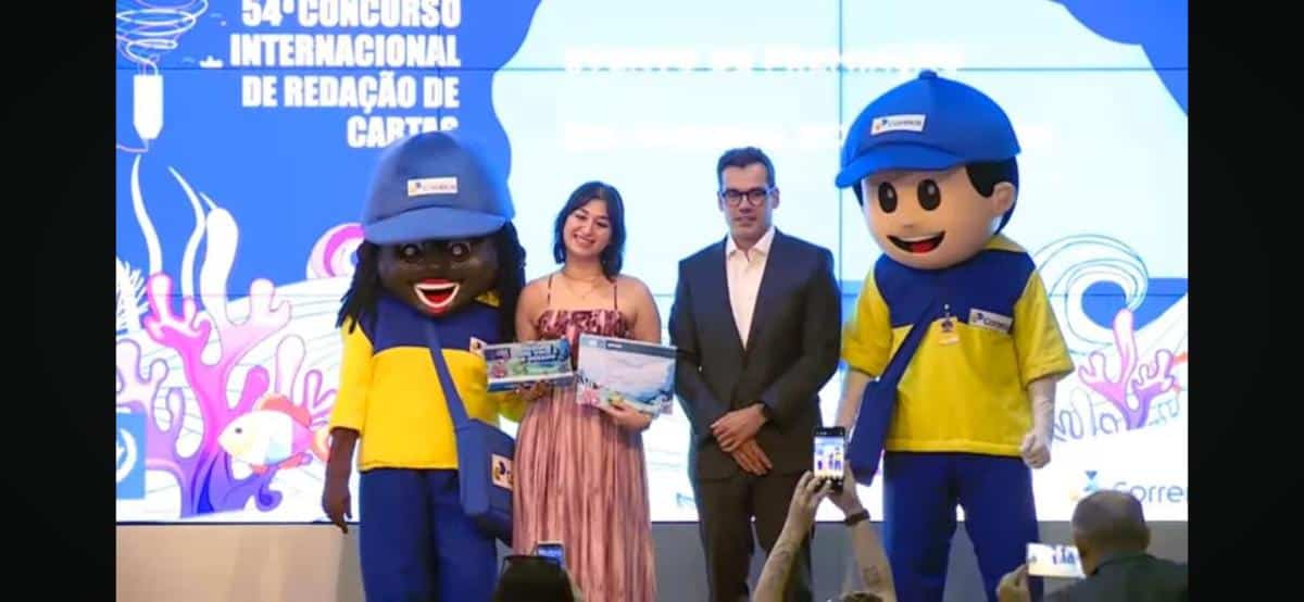 Para celebrar o Dia Mundial dos Correios, comemorado nessa quinta-feira (9), os Correios ressaltaram o papel da empresa como elo essencial de inclusão social, desenvolvimento e inovação, com destaque para a premiação do 54º Concurso Internacional de Redação de Cartas. A estudante sergipana Beatriz Kfouri Azevedo, de 16 anos, recebeu troféu e certificado, após vencer a etapa nacional do certame, em cerimônia realizada em Brasília (DF). O evento foi transmitido no canal dos Correios no YouTube e acompanhado pelos alunos escola Maple Bear Aracaju, onde Beatriz cursa o 1º ano do Ensino Médio.
