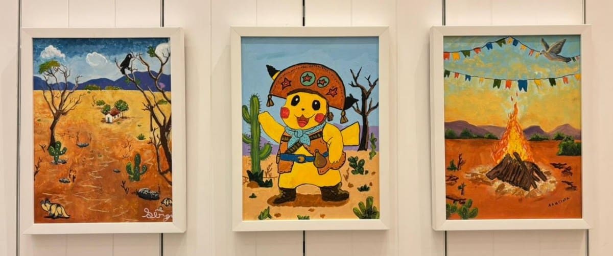 A mostra reúne 38 pinturas produzidas por 37 crianças, com idades entre 6 e 13 anos, que traduzem em cores vibrantes e traços espontâneos as belezas, tradições e sentimentos que permeiam o sertão. As obras, repletas de imaginação e identidade regional, refletem a riqueza natural e cultural do Nordeste sob uma perspectiva infantil repleta de poesia.
