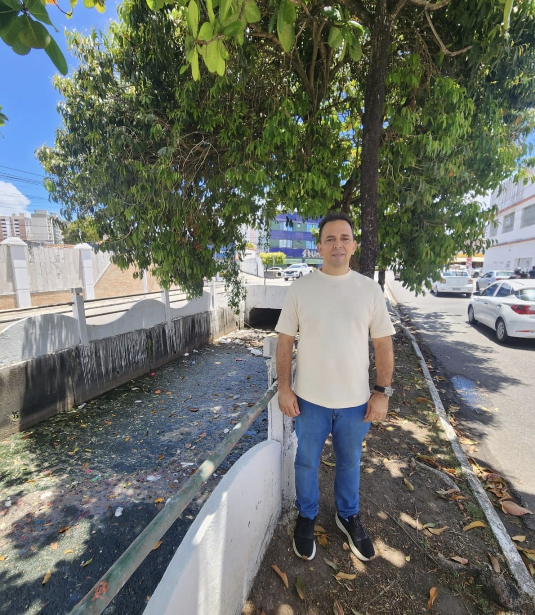 O vereador Fábio Meireles (PDT) cobra a limpeza dos resíduos do canal da Av. Gonçalo Prado Rolemberg, no bairro São José, em Aracaju.