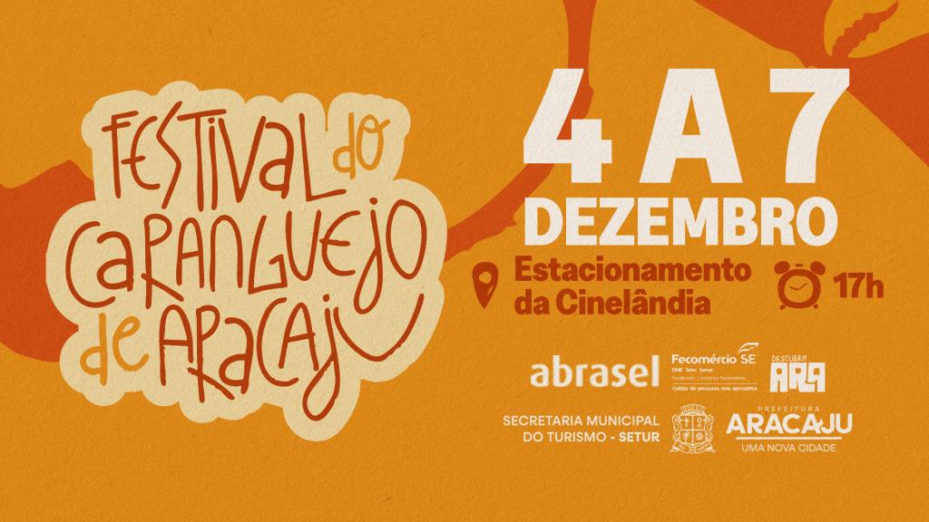 Entre os dias 4 e 7 de dezembro, o Festival do Caranguejo vai movimentar toda a cadeia produtiva do setor turístico de Aracaju no estacionamento da Praia da Cinelândia, na Orla da Atalaia. O evento é promovido pela Prefeitura de Aracaju, por meio da Secretaria Municipal do Turismo (Setur), em parceria com Associação Brasileira de Bares e Restaurantes de Sergipe (Abrasel/SE) e com a Federação do Comércio de Bens, Serviços e Turismo do Estado de Sergipe (Fecomércio/SE). Além da experiência gastronômica, o evento vai contar com programação musical todos os dias.