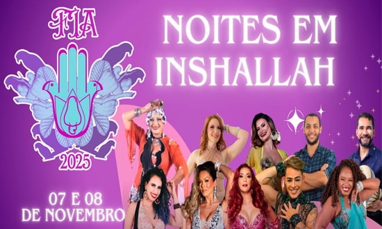 Prepare-se para se apaixonar pela cultura oriental. Nos dias 7 e 8 de novembro, a cidade de Aracaju será palco de um espetáculo inesquecível: “Noites em Inshallah”, shows que fazem parte da programação do Festival Inshallah 2025. O evento acontece no Arcus Hotel, Sala Aruana, localizado na Av. Mário Jorge, nº 428 – Coroa do Meio, em Aracaju, e promete encantar o público com a magia das danças árabes.