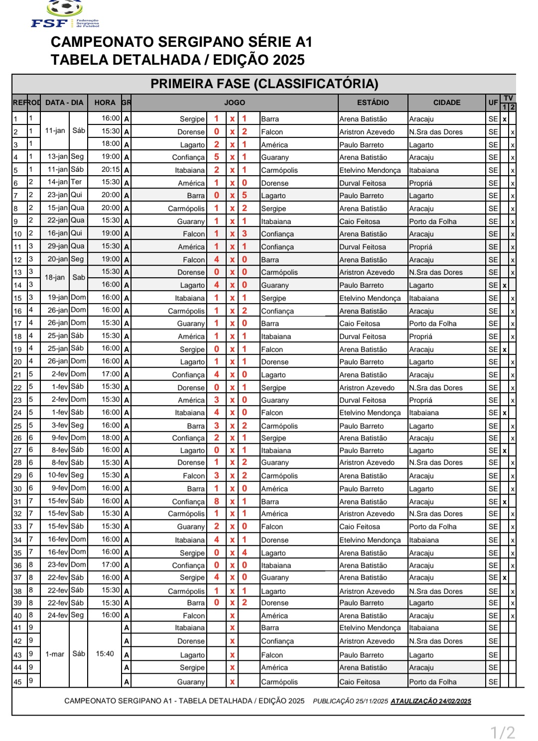 O Departamento de Competições da Federação Sergipana de Futebol (FSF), divulgou no expediente desta segunda-feira (24/02), os detalhes da 9ª e última rodada do Campeonato Sergipano da Série A1.
