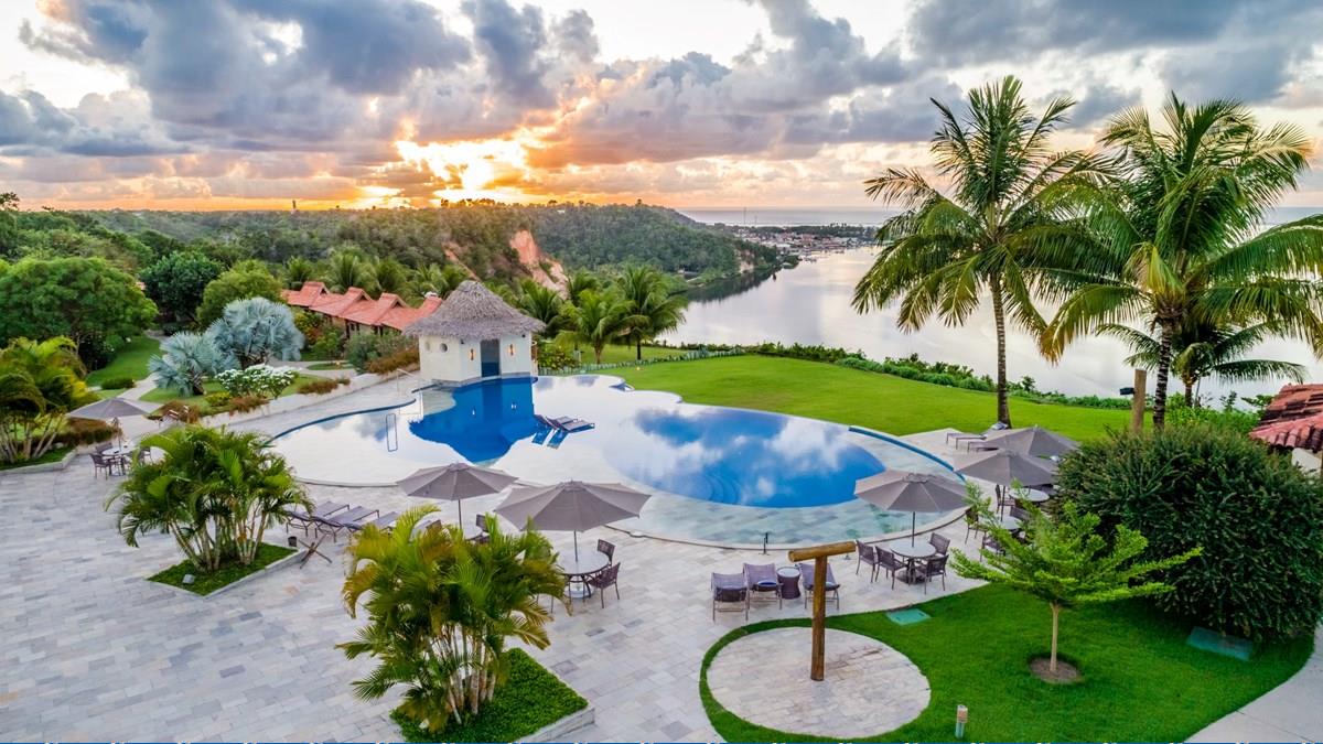 A piscina de borda infinita convida à contemplação, enquanto passeios personalizados de jangada ou trilha ecológica revelam os encantos da região. Para casais, celebrações especiais ganham cenário único.