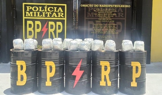 Na abordagem, os policiais encontraram aproximadamente 20,6 kg de maconha do tipo “flor” nas sacolas transportadas. Também foram apreendidos um celular, dois capacetes e documentos pessoais.
