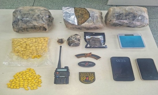 Ao se aproximar do imóvel, o suspeito visualizou a presença policial e tentou correr para dentro do apartamento. Diante da fundada suspeita, os policiais acompanharam o homem até a parte interna da residência, onde momentos depois encontraram 1,5 kg de substância análoga à maconha, 500g de uma substância sintética desconhecida, 165g de haxixe, uma balança de precisão, um rádio comunicador, dois aparelhos celulares, além de outros materiais.