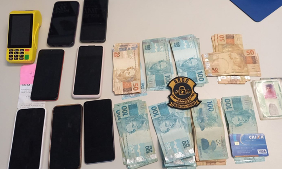 No local, os policiais identificaram quatro homens com uma quantia significativa em dinheiro, cartões bancários em nome de terceiros e maquinetas de cartão de crédito. Parte dos suspeitos confessou que estava ali para receber valores provenientes de golpes digitais.