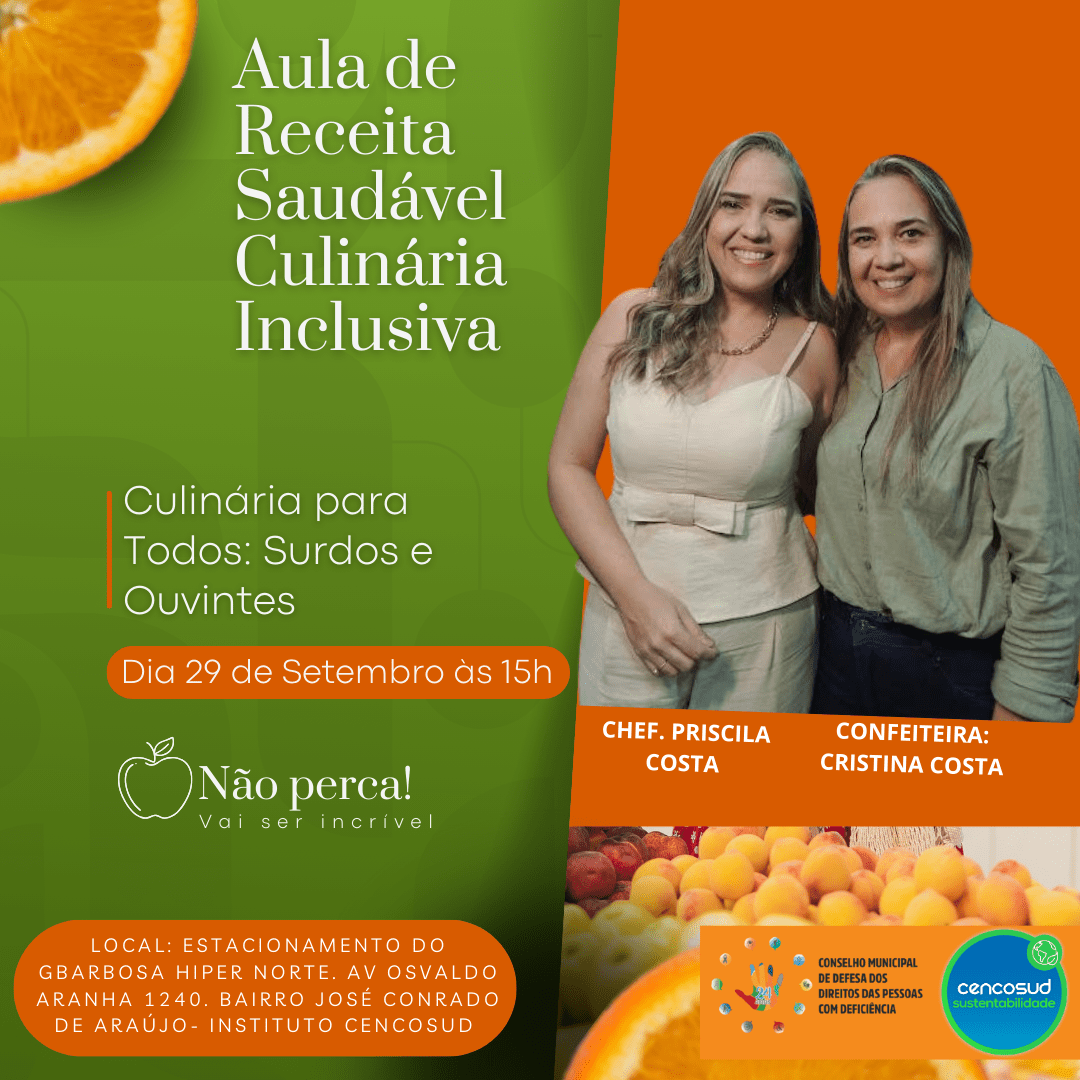 Na próxima segunda-feira, 29, a partir das 15h, a cozinha do Instituto Cencosud Sustentabilidade (ICS) oferecerá uma aula de culinária saudável e inclusiva. A trajetória da Chef Priscilla Costa junto à irmã, a confeiteira Cristina Costa, que atua há 6 anos com doces tradicionais e finos, salgados e bolos, é de uma parceria inclusiva na cozinha. As irmãs se comunicam pela língua de sinais, libras, visto que Cristina é pessoa surda e a dupla se especializou em promover uma gastronomia com sabor de muita inclusão.