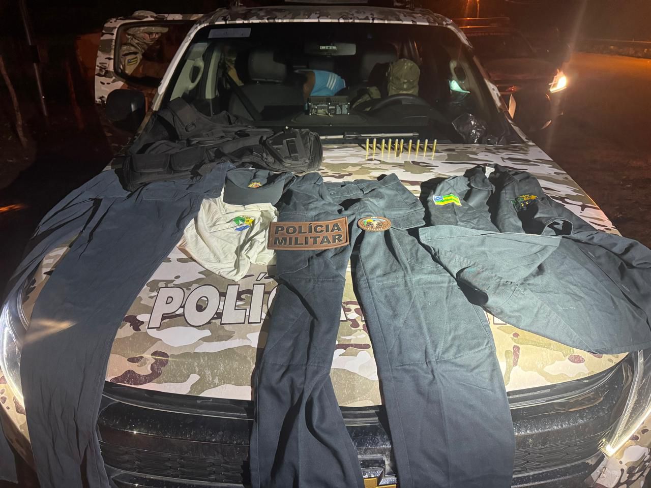 Com ele os policiais apreenderam munições de uso restrito, colete e fardamentos militares (Foto: SSP/SE)