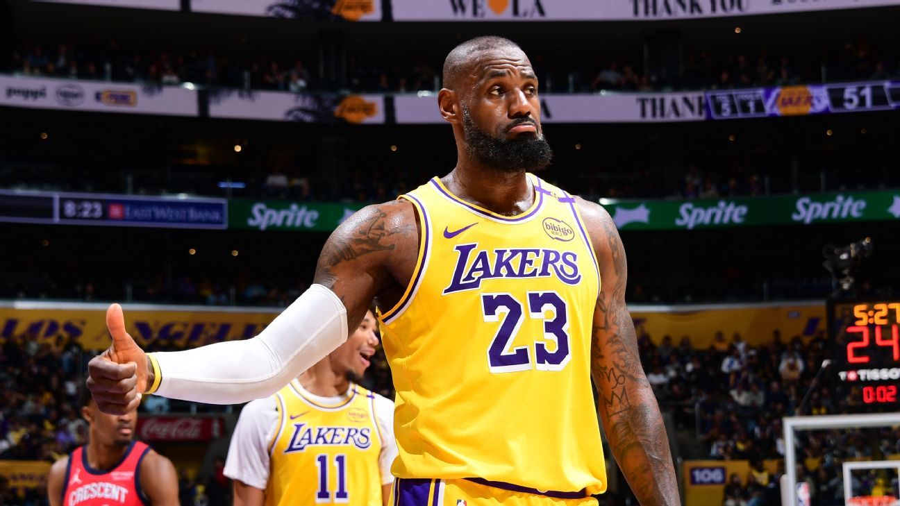 Na temporada 2024-25, LeBron já chegou aos 1.397 pontos, com média de 24,9 por jogo. Ele também distribui 8,6 assistências e pega 7,1 rebotes por partida.