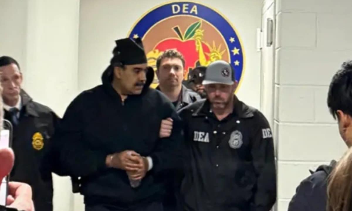 No desembarque, Maduro aparecia cercado por dezenas de agentes federais do FBI e da DEA, a agência de combate às drogas do país norte-americano. Vestindo moletom e usando capuz, ele parecia ter algemas nos pés e nas mãos, e tinha dificuldade de descer as escadas da aeronave e caminhar pela pista até um hangar do aeroporto.