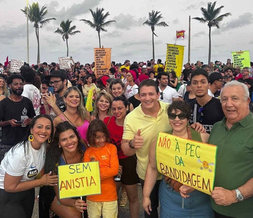 Ato cultural e político – O evento contou com apresentações de artistas como Samba do Arnesto, Nino Karvan, Lucas Campello, Descidão dos Quilombolas e Lampião da Rima, expondo cartazes com frases como “Justiça Seja Feita” e “Não à PEC da Bandidagem”, que foram destaque entre os manifestantes.