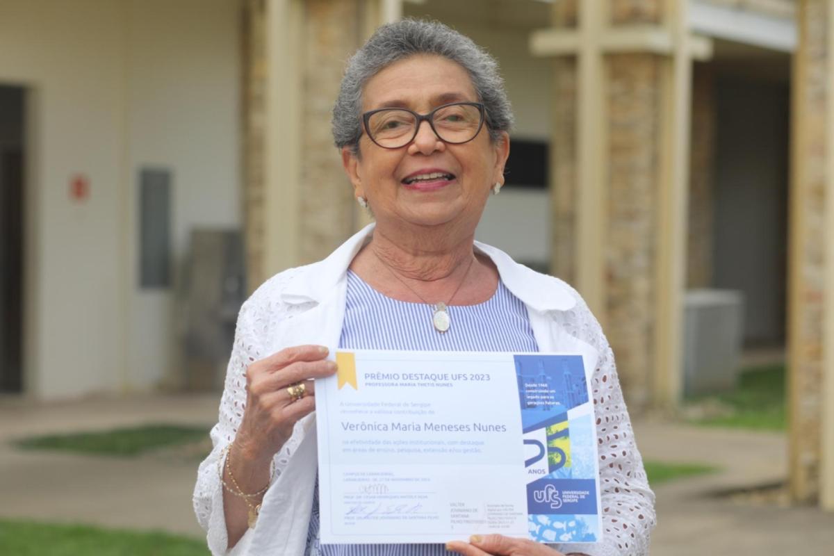 Professora aposentada da instituição, Verônica teve trajetória marcante na universidade, inicialmente no Departamento de História e, posteriormente, no Departamento de Museologia, contribuindo para o ensino, a pesquisa e a preservação da memória e do patrimônio cultural de Sergipe.