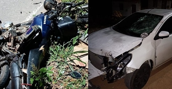 De acordo com informações do Batalhão de Polícia Rodoviária Estadual (BPRv), a ocorrência foi registrada por volta das 20h35 e envolveu um automóvel modelo Nissan Versa, de cor branca, e uma motocicleta Honda CG 125 Fan, de cor azul.