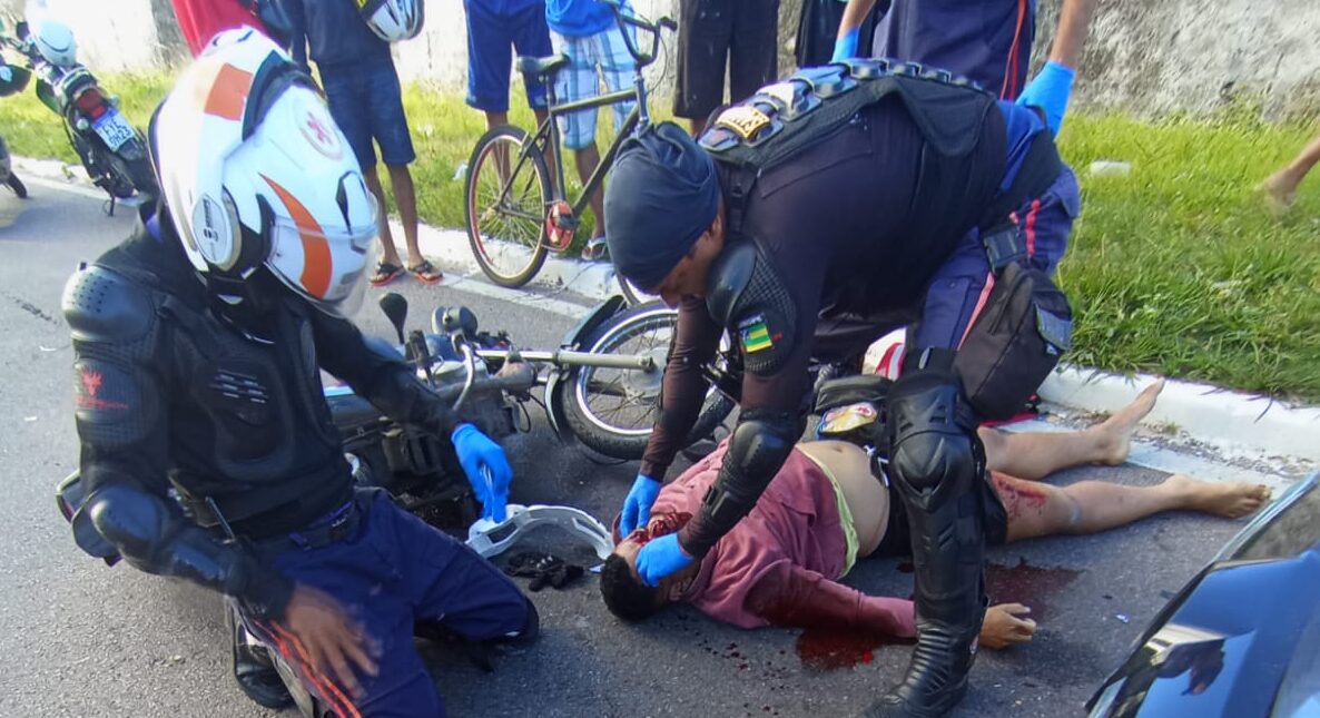 Um motociclista morreu na manhã deste sábado (09), após se envolver em acidente com um carro de passeio, na Avenida Heráclito Rollemberg, na lateral do muro do aeroporto de Aracaju.